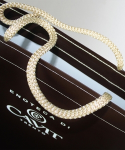 Hochwertige Papiertragetasche mit Umschlag und Blockboden. Handfertigung, mit hochwertigen Nähten gestaltet . Offsetdruck. Unsere Referenz: Mod. "M Premium".
